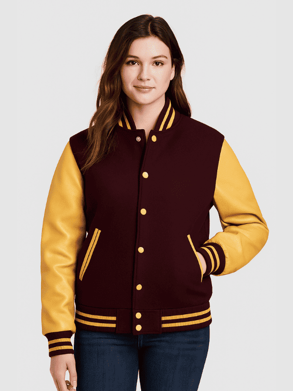 Brown With Gold Leather Sleeves Varsity For Women’s