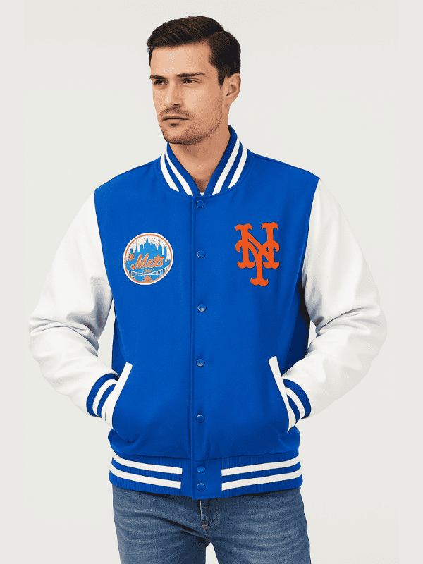 New York Mets Blue & White Varsity Jacket – Celebrate Your Team in Style