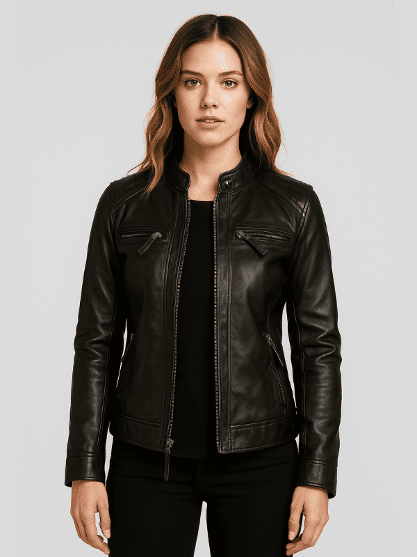 Be the first to review “Outwear Legacy Women’s Simple Black Biker Jacket”